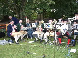 Nach dem gemeinsamen Mittagessen im "Roten Ochsen" spielten die Blasmusik Neuengrün/Schlegelshaid zur Einstimmung auf. |
