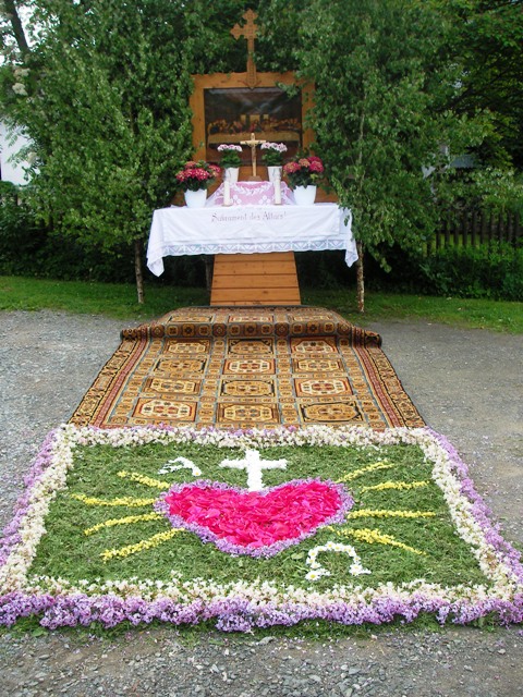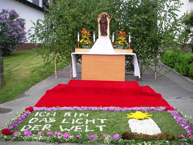 Bis in die 70er Jahre wurden am Fronleichnamstag die Altäre im Dorfinnern und am darauffolgenden Sonntag als Flurumgang