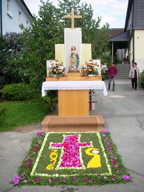 Die Neuengrüner Fronleichnamsaltäre werden traditionell von den 4 Anwesen Nr. 1, Nr. 6, Nr. 9 und Nr 14 -