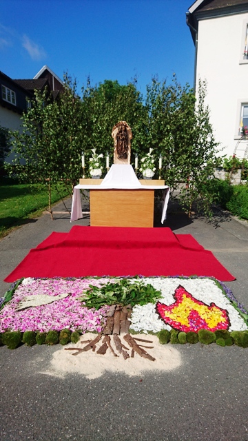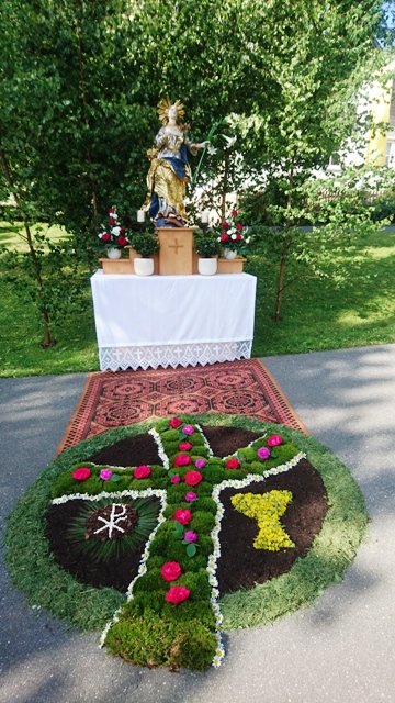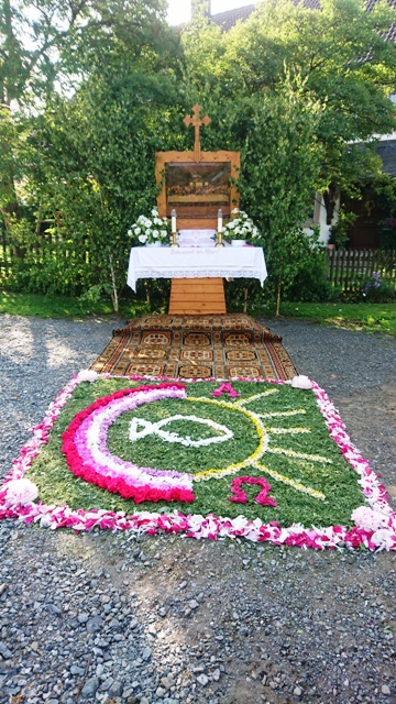 Bis in die 70er Jahre wurden am Fronleichnamstag die Altäre im Dorfinnern und am darauffolgenden Sonntag als Flurumgang