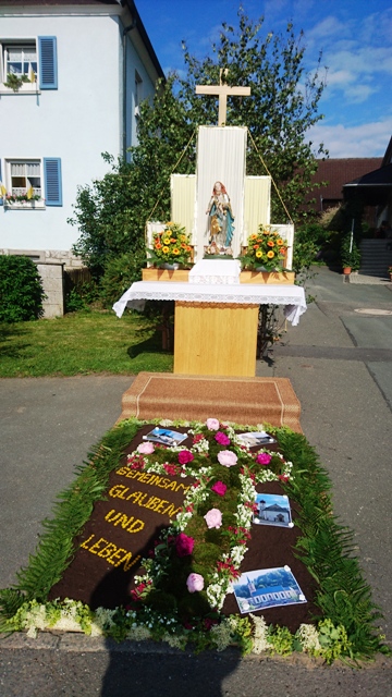 Die Neuengrüner Fronleichnamsaltäre werden traditionell von den 4 Anwesen Nr. 1, Nr. 6, Nr. 9 und Nr 14 -