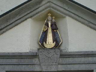 Kirchenportal mit Sandsteinfigur der Muttergottes