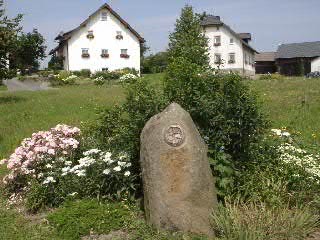 Kirchenvorplatz mit Gedenkstein und Ehrung: Bezirkssieger 1985 "Unser Dorf soll schöner werden